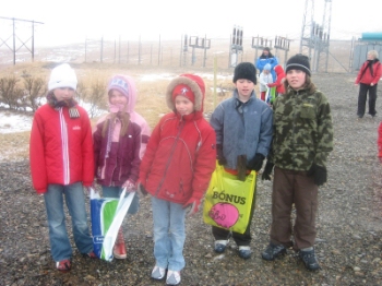 | Nokkrir nemendur 3. bekkur í ruslatínslu í dag |