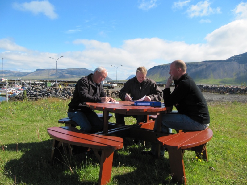 Á meðfylgjandi mynd má sjá Hafstein Garðarsson, hafnarstjóra og Jónas Jónbjörnsson skrifa undir verksamninginn undir vökulu auga fulltrúa Siglingastofnunar, Rob P.M. Kamsma. Kostnaður við verkið er um 27,5 millj. kr.