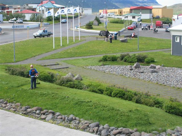 Starfsfólk áhaldahúss Grundarfjarðarbæjar notaði veðurblíðuna í dag og sló gras í gríð og erg. Mikil og góð spretta er um þessar mundir sem kemur sér vafalaust vel fyrir bændur. Hjá bænum myndu menn vel una minni sprettu. Mestur tími starfsmanna fer í umhirðu grænna svæða, en verkefnin eru næg við að fegra og snyrta.
