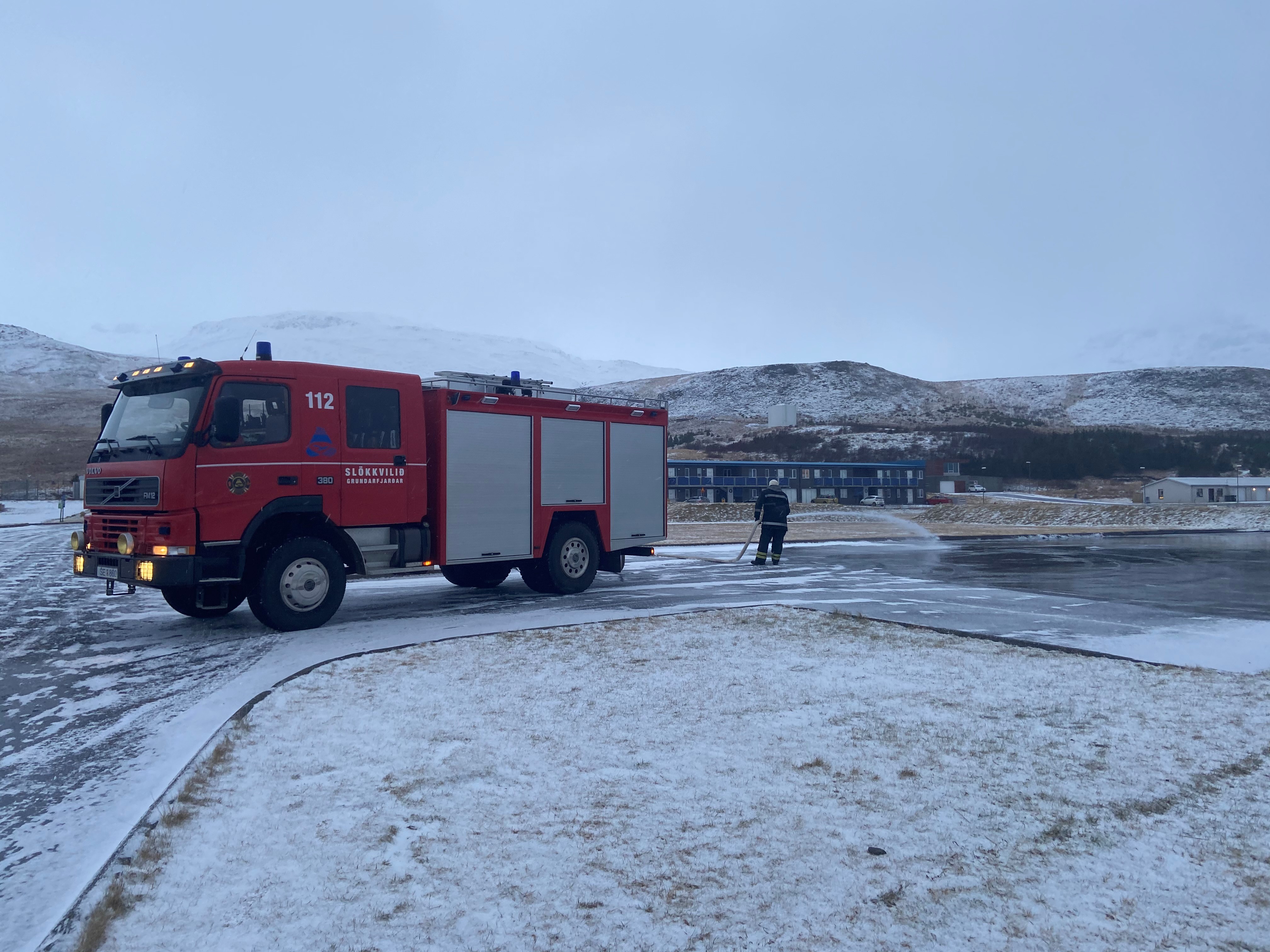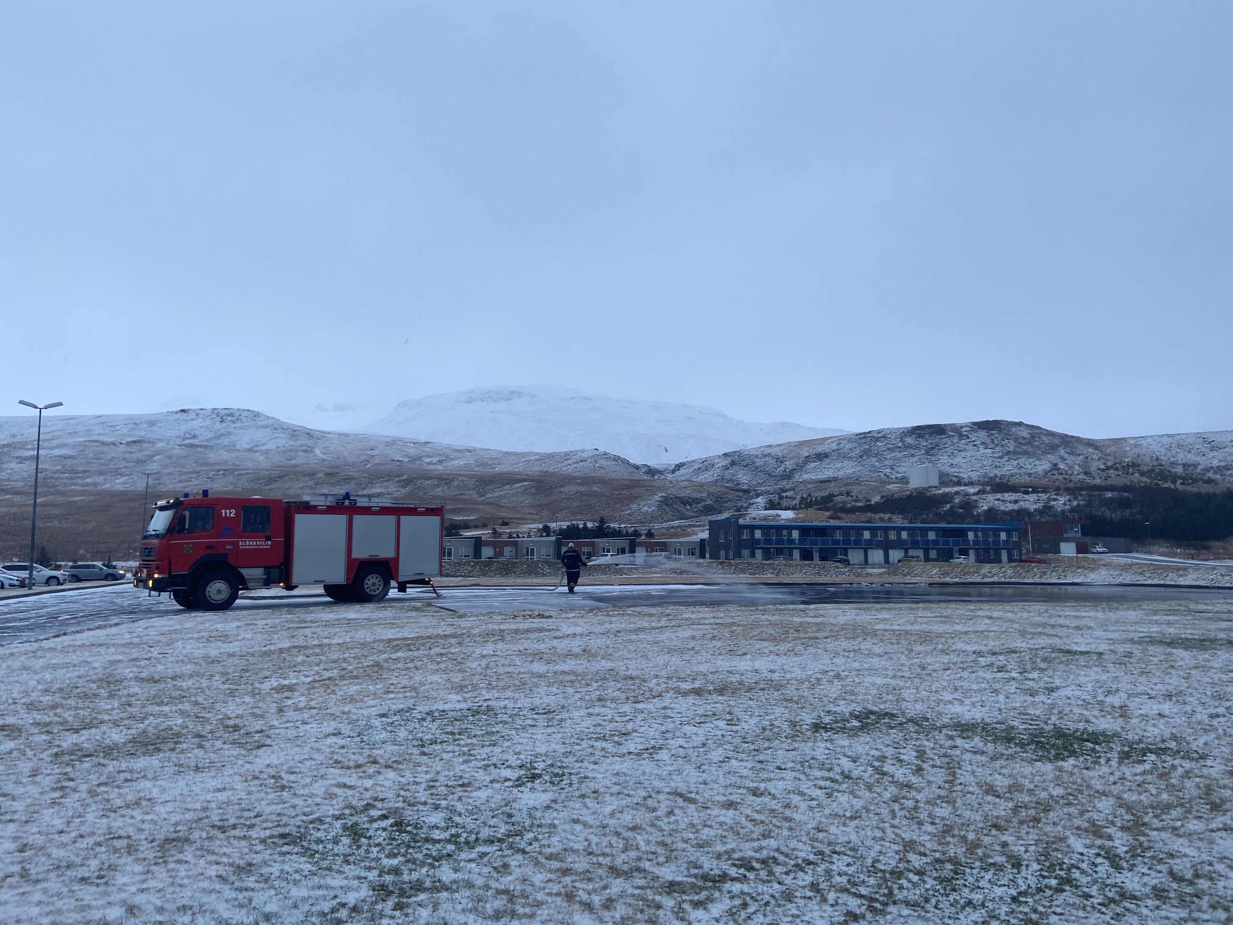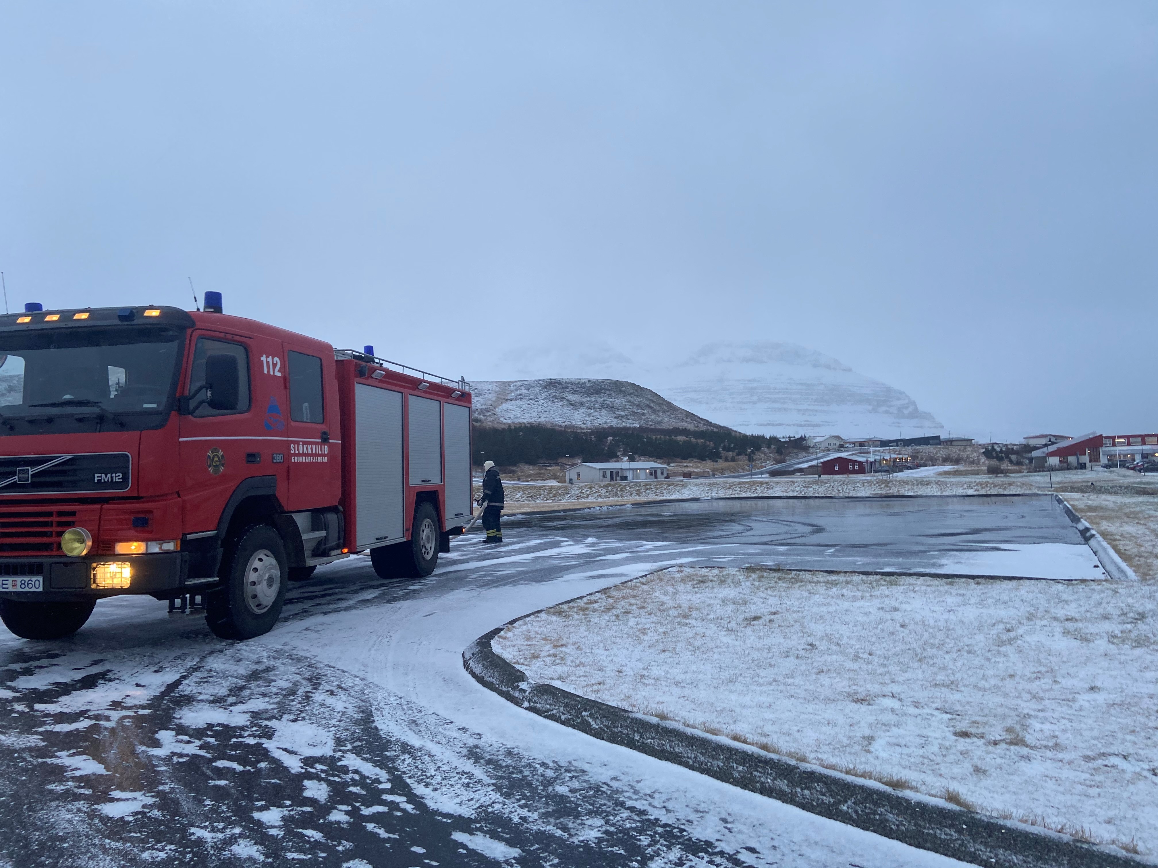 Gummi hjá slökkviliðinu var í dag að sprauta meira vatni á svæðið og verðum við bara að vona að frost haldist, svo hægt sé að skella sér á skauta.