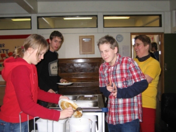 Haustið 2003 var í fyrsta skipti boðið upp á heitan mat í hádeginu fyrir nemendur og starfsfólk grunnskólans. Veitingahúsið Kaffi 59 sér um matseldina og þykir fyrirkomulagið ganga mjög vel. Um 127 eru nú skráðir í mat. Þær stöllur í Kaffi 59 koma með matinn í skólann og skammta nemendum á diska, en nemendur matast í skólastofum sínum. Meðfylgjandi eru myndir frá hádegissnæðingi nú í febrúar.