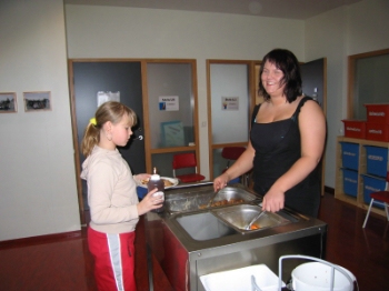 | Berglind Rósa skammtar Sigurbjörgu Pétursd. á diskinn |