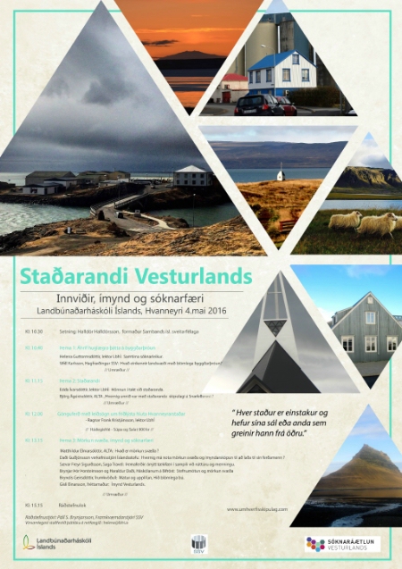 Ráðstefnunni er ætlað að leiða Vestlendinga til samtals um sérkenni sveitarfélaga og hvernig þau geta nýst sem sókn í ímyndavinnu og atvinnutækifærum. Halldór Halldórsson formaður Sambands ísl. Sveitarfélaga setur ráðstefnuna en að henni koma fjöldi fyrirlesara, s.s. Björg Ágústsdóttir frá Alta, Vífill Karlsson, Daði Guðjónsson frá Íslandsstofu , Sævar Freyr Sigurðsson frá Saga Travel, Bryndís Geirsdóttir og Edda Ívarsdóttir frá LbhÍ. Nemendur umhverfisskipulagsbrautar hafa unnið mörg greiningar og hönnunarverkefni á Vesturlandi sem kynnt verða á ráðstefnunni. Þá verður opnuð sérstök vefsíða sem gerir fjölda verkefna aðgengileg. Að undirbúningi ráðstefnunnar hafa komið Páll Brynjarsson formaður SSV og Helena Guttormsdóttir lektor og brautarstjóri LbhÍ. Sveitastjórnarfólk, ferðaþjónustuaðilar og allt áhugafólk um betri byggð er hvatt til að taka daginn frá því svo sannarlega eru sóknarfæri svæðisins mörg.