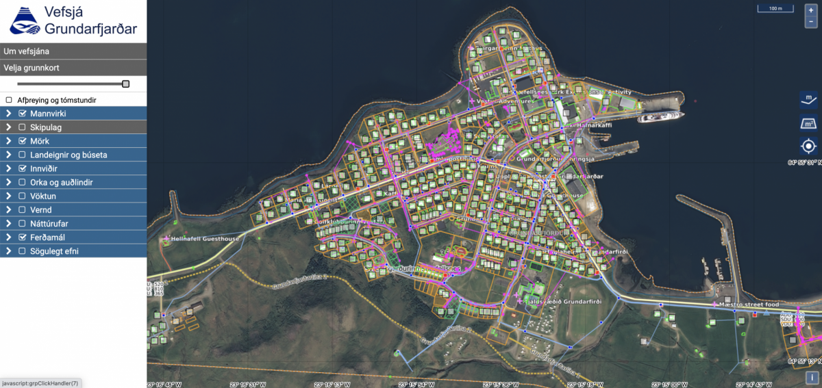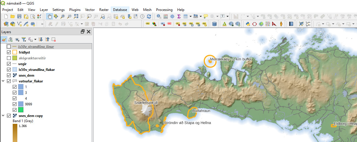 Hér má sjá kort af Snæfellsnesi sem m.a. var búið til á námskeiðinu.