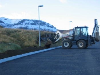 Vélaleiga Kjartans Elíassonar er þessa dagana að keyra möl í bil milli vegkants og kantsteins á götunum þar sem malbik var lagt á í sumar og nýr kantsteinn steyptur. Mölin er sett sem stuðningur við kantsteininn og jafnframt ætluð sem fyllingarefni undir gangstéttir sem síðar koma meðfram götunum. Sjá fleiri myndir í myndabankanum með því að smella hér.