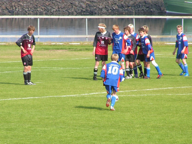 Strákarnir voru ekki að spila sinn besta leik í 53 mínútur af 70, en loksins hrukku þeir í gang og skoruðu 3 mörk á 9 mínútum og munaði minnstu að þeir næðu að jafna leikinn. Gaman var að sjá hvað margir mættu að horfa á leikinn í sólinni í dag.