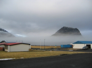 | Kirkjufellið reynir að rífa af sér þokuslæðuna mánud. 21. febrúar |