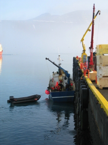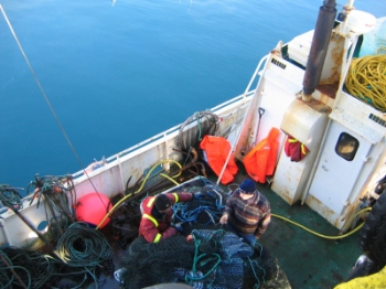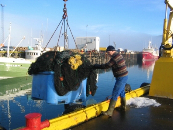 | Þeir voru hressir kapparnir á Munda SH í gær þegar þeir komu frá því að leggja út gildrur til veiða á þorski til áframeldis. |