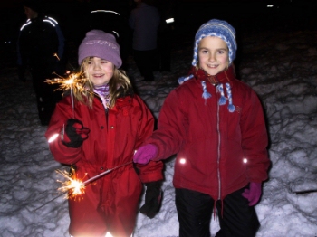 Björgunarsveitin Klakkur hélt svo flugeldasýningu uppi í hæstu hæðum, eða á toppi Fellakolls fyrir ofan hesthúsahverfi. Veðrið var stillt og gott og mikill fólksfjöldi, börn og fullorðnir, sem skemmti sér hið besta.