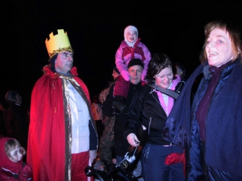 Álfaganga var farin frá veitingahúsinu Kaffi 59 og var gengið að brennustað. Í broddi fylkingar voru álfakóngur og álfadrottning, þau Gunnar Njálsson og Ída María Ingadóttir.