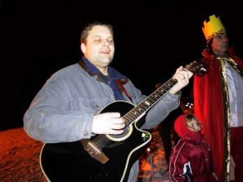 | Jökull Helgason spilaði undir í fjöldasöng |