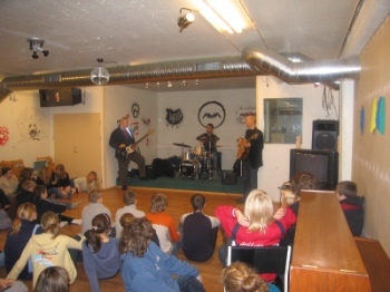 Í gær, miðvikudaginn 29. nóvember, komu tónlistarmenn í heimsókn í til Grundarfjarðar og spiluðu í félagsmiðstöðinni Eden í tengslum við verkefnið „Tónlist fyrir alla“. Þar var fremstur í flokki Björn Thoroddsen. Fluttar voru útsetningar Björns á sálmum Martins Lúthers fyrir djasstríó, en tríóið skipa auk hans, þeir Jóhann Ásmundsson (Mezzoforte) á rafbassa og Benedikt Brynleifsson (Hljómsv. Björgvins Halldóssonar) á trommur og slagverk. Sýndir voru meistarataktar og höfðu bæði nemendur og starfsfólk grunnskólans mikið gaman af.