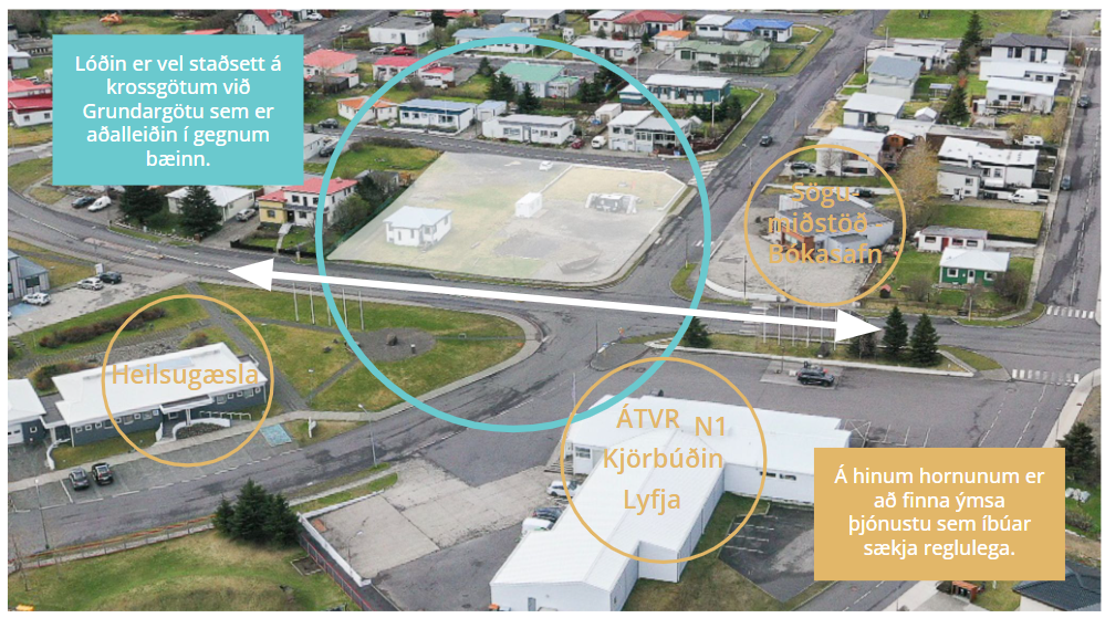 Í Aðalskipulagi Grundarfjarðar 2019-2039 var unninn svokallaður "rammahluti" aðalskipulags, þar sem kafað var dýpra en annars er gert í aðalskipulagi og settar niður framtíðarsýn og forsendur fyrir uppbyggingu og starfsemi í miðbæ. Aðalskipulagið gerir ráð fyrir blandaðri starfsemi, verslun og þjónustu og íbúðum á svæðinu, sem liggur á góðum stað í miðbæ, við aðalgötuna. Í vinnu sem fram hefur farið nú í janúar og febrúar er byggt á forsendum aðalskipulagsins. Leitast er við að skilgreina óskir og stefnu um hvaða starfsemi og uppbygging eigi heima á þessum reit og verður boðað til opins fundar með íbúum um þetta verkefni á næstunni, og lóðarréttindin síðan auglýst opinberlega.