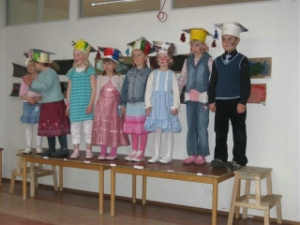 Miðvikudaginn 30. maí sl. var útskrift í Leikskólanum Sólvöllum. Í ár eru útskrifaðir 8 nemendur. Athöfnin fór fram á Drekadeildinni þar sem útskriftarnemendur mættu ásamt foreldrum sínum og öðrum ættingjum. Krakkarnir settu upp hatta sem þau höfðu búið til, foreldrafélagið gaf þeim rós og þeim var afhent ferlimappan sín. Eftir athöfnina á Drekadeildinni var farið í skrúðgöngu út á Kaffi 59 þar sem flatbökuveisla beið þeirra. Eftir helgi fara þau í útskriftaferð frá Kl. 9:00 til 19:00.