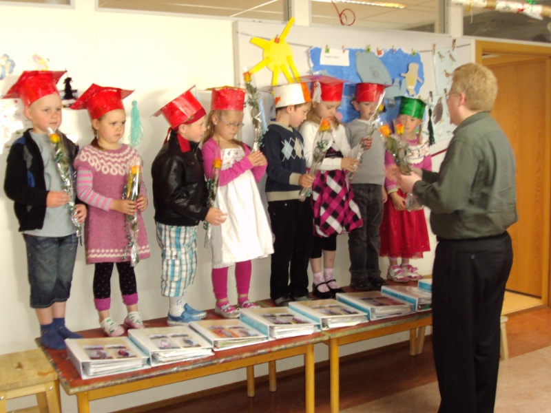 Þetta eru Arnar Breki, Bjargey, Gabríel Ómar, Íris Birta, Leó, Margrét Helga, Ólafur Birgir og Sóldís Hind. Nemendur sungu og lesin voru nokkur gullkorn. Þá settu nemendur upp útskriftarhatta sem þau höfðu málað og fengu Ferlimöppurnar sínar afhentar. Fulltúar frá Bæjarstjórn og Foreldrafélaginu afhentu nemendum rósir. Síðan var farið í skrúðgöngu í Kaffi 59 í flatbökuveislu. Eitt gullkorn: