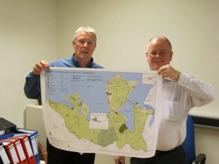 Í gær lauk afgreiðslu Grundarfjarðarbæjar á Aðalskipulagi Grundarfjarðar 2003-2015, dreifbýlishluta, með því að bæjarstjóri undirritaði uppdrætti og greinargerðir. Bæjarstjórnin lauk umfjöllun sinni á fundi þ. 12. nóvember sl. Með þessari undirritun lýkur ferli sem staðið hefur yfir með hléum frá árinu 1995. Aðalskipulaginu var skipt í tvo áfanga og var byrjað á að skipulegggja þéttbýlishlutann og lauk þeim áfanga með staðfestingu ráðherra í desember 2003. Vonast er til að umhverfisráðherra staðfesti aðalskipulagið á næstu vikum. Á myndinni halda Hjörtur H. Kolsöe, skipulags- og byggingafulltrúi og Guðmundur Ingi Gunnlaugsson, bæjarstjóri, aðalskipulagsuppdrættinum á milli sín.