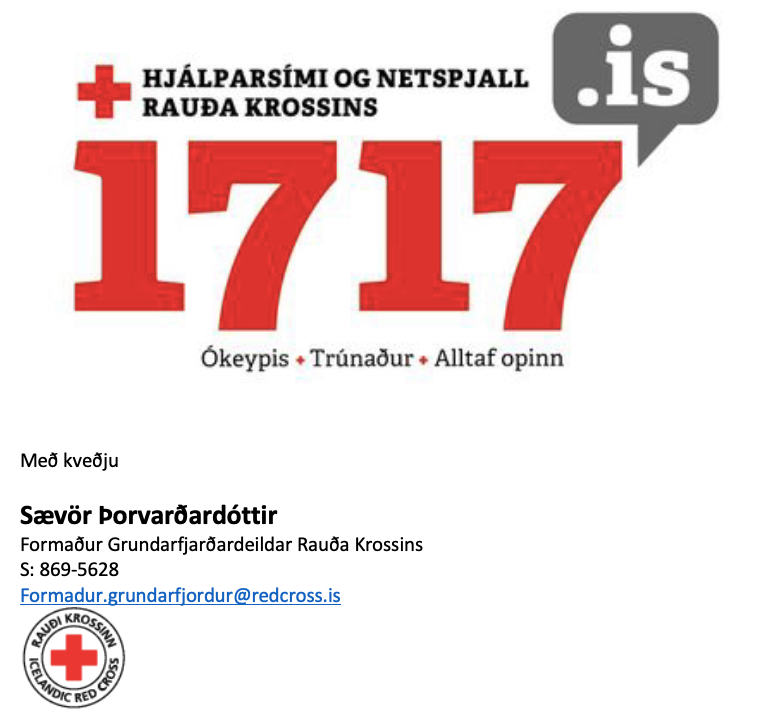 Rauði kross Íslands minnir á að þau sem eru í sóttkví, einangrun eða varnarsóttkví geta notfært sér hjálparsíma Rauða krossins 1717, ef þau þurfa aðstoð við að fá aðföng úr verslunum, lyf eða aðrar nauðsynjar.