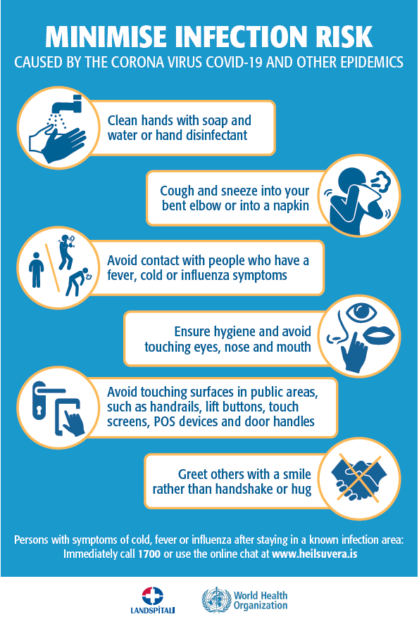 Á vefnum www.covid.is er að finna gagnlegar upplýsingar fyrir almenning. Sá vefur er á vegum embættis landlæknis og almannavarna.